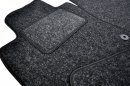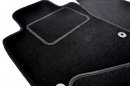 Koberec čiernej alebo tmavo sivej farby s kvalitným vlasom, ľahká údržba, priaznivá cena. Rubová strana je spevnená granulátovým povrchom, tiež možné farebné obšitie lemovkou. Originálne na mieru do každého auta - kompletná sada!